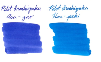 Với 4 màu này của Iroshizuku thì thông thường mọi người hay chọn Asagao, nhưng chúng tôi khuyến nghị nên dùng Konpeki vì Asagao lâu khô hơn, đồng thời màu Asagao là xanh sắc tím; trong khi màu Konpeki là xanh da trời.